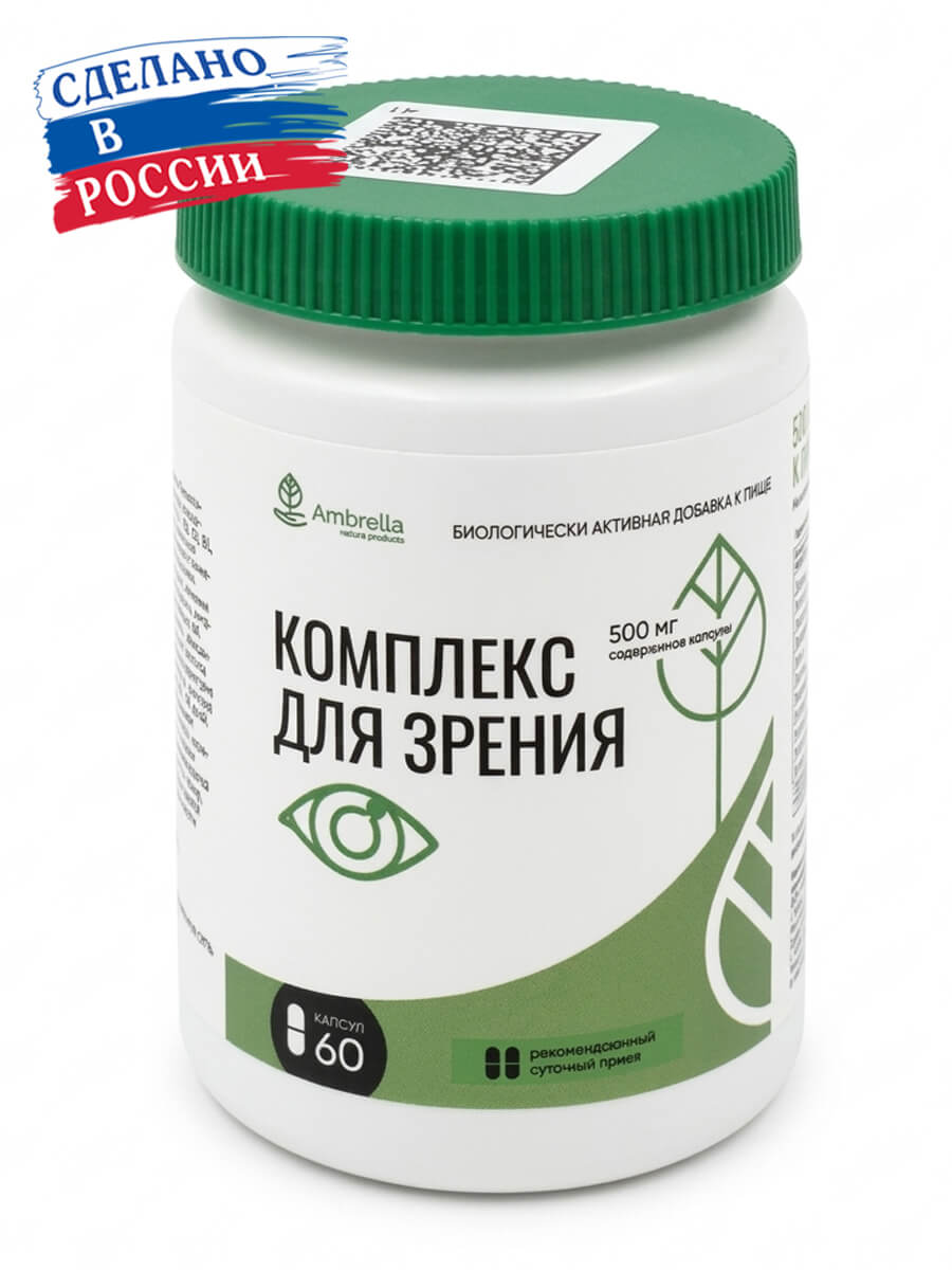 Действие на организм: Комплекс для зрения — это сочетание растительных экстрактов, витаминов, антиоксидантов и природных компонентов для ежедневной поддержки глаз при повышенных зрительных нагрузках. Таурин, лютеин и зеаксантин помогают поддерживать зрительный комфорт, а черника и очанка традиционно используются в формулах для защиты зрения. Витамины A, C, E, цинк и витамины группы B способствуют поддержанию обменных процессов в тканях глаза, помогают защищать клетки от окислительного стресса и поддерживать микроциркуляцию. Комплекс может быть полезен при утомлении глаз, слезоточивости, работе за компьютером, воздействии пыли, недостаточного освещения и возрастных изменениях зрения.